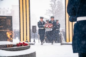 Все присутствующие почтили память воинов-интернационалистов минутой молчания и возложили венки и цветы к мемориалу. Курсанты Рязанского десантного училища прошли торжественным маршем.